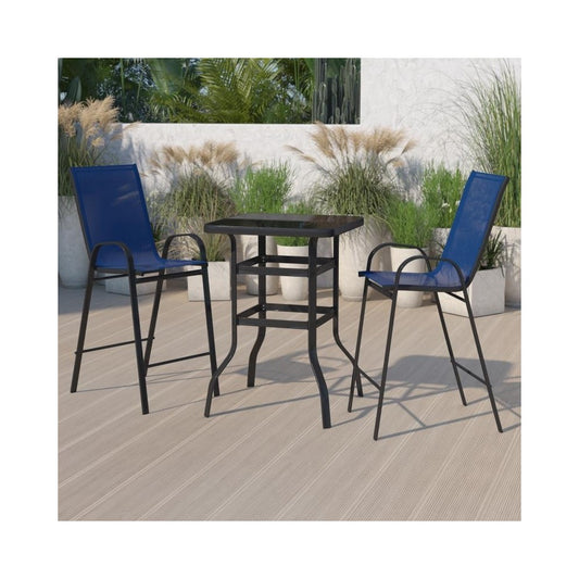 Flash Furniture Brazos Navy Glass Bar Patio Table Set TLH-073H092H-NV-GG