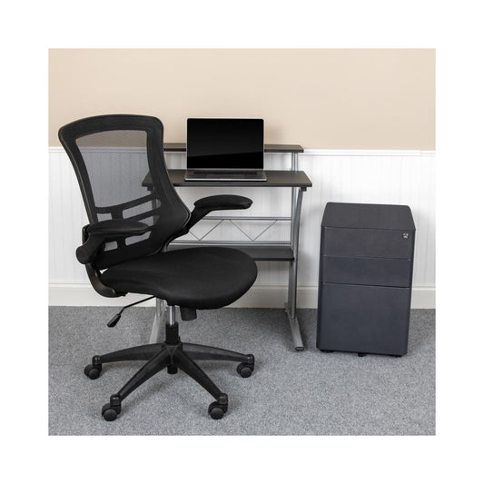 Flash Furniture Calder Black Desk, Chair, Cabinet Set BLN-CLIFCHPX5-BK-GG