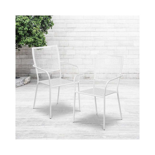 Commercial Grade White Indoor-Outdoor Steel Patio Arm Chair with Square Back