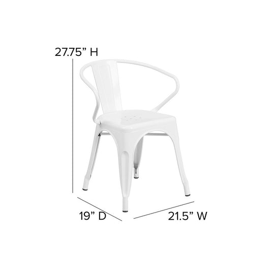 Commercial Grade White Metal Indoor-Outdoor Chair with Arms