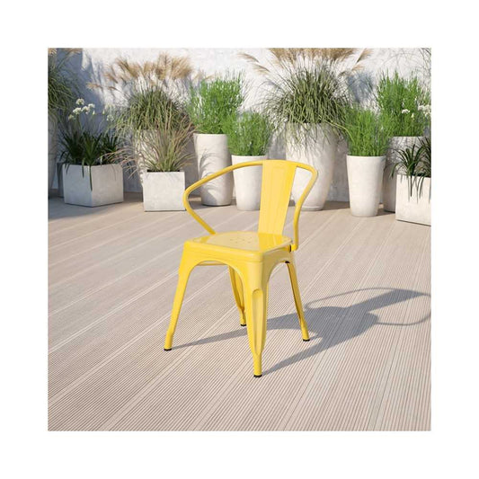 Commercial Grade Yellow Metal Indoor-Outdoor Chair with Arms