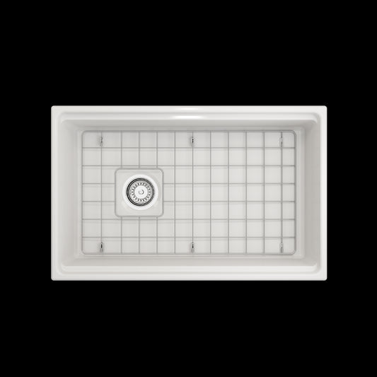 Contempo Apron Front Step Rim with Integrated Work Station Fireclay 30 in. Single Bowl Kitchen Sink with Accessories in White
