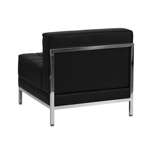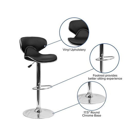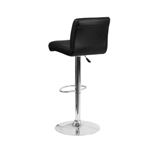 Contemporary Cozy Mid-Back Black Vinyl Adjustable Height Barstool with Chrome Base