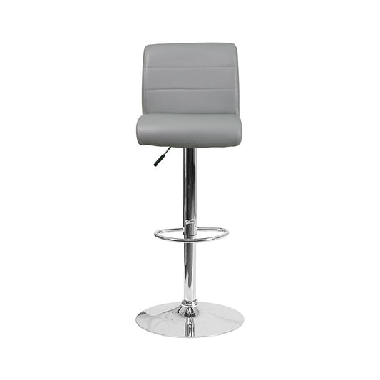 Contemporary Gray Vinyl Adjustable Height Barstool with Rolled Seat and Chrome Base