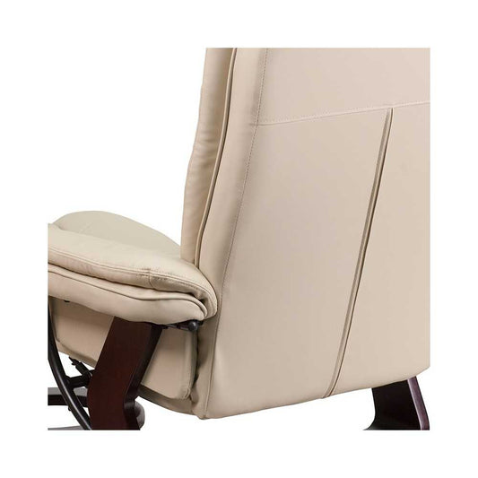 Contemporary Multi-Position Recliner with Horizontal Stitching and Ottoman with Swivel Mahogany Wood Base in Beige LeatherSoft
