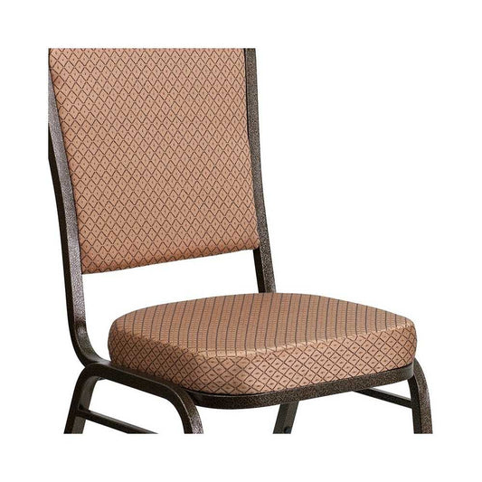 Crown Back Stacking Banquet Chair in Gold Diamond Patterned Fabric - Gold Vein Frame