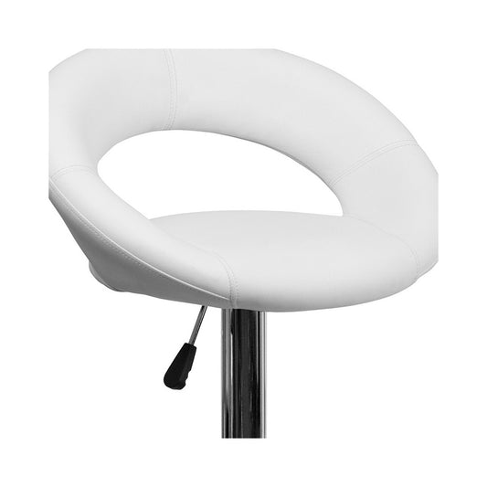Contemporary White Vinyl Rounded Orbit-Style Back Adjustable Height Barstool with Chrome Base