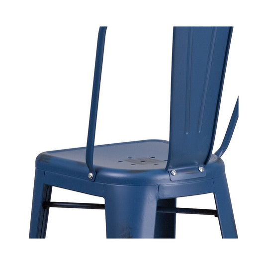 Commercial Grade 30" High Distressed Antique Blue Metal Indoor-Outdoor Barstool with Back