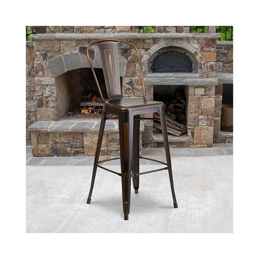 Commercial Grade 30" High Distressed Copper Metal Indoor-Outdoor Barstool with Back