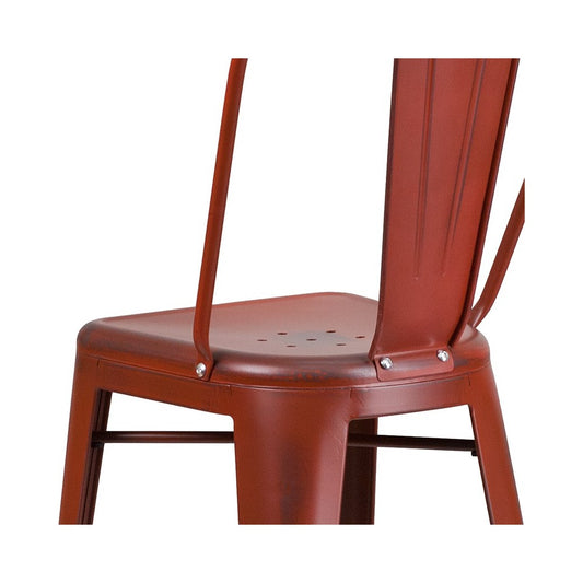 Commercial Grade 30" High Distressed Kelly Red Metal Indoor-Outdoor Barstool with Back
