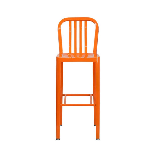 Commercial Grade 30" High Orange Metal Indoor-Outdoor Barstool with Vertical Slat Back