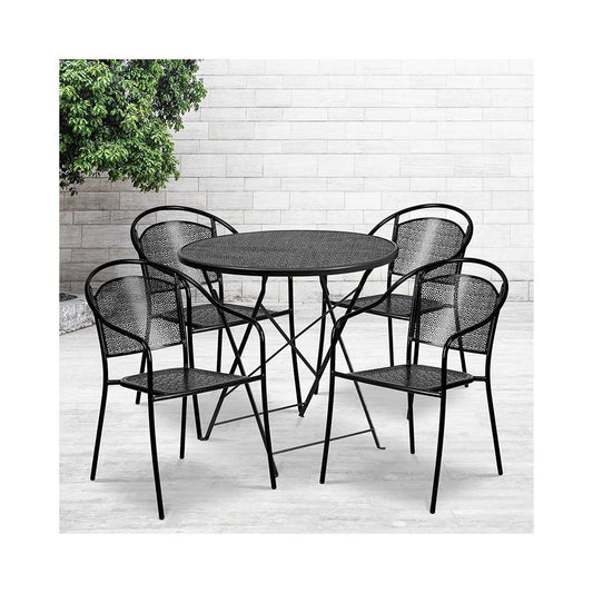 Commercial Grade 30" Round Black Indoor-Outdoor Steel Folding Patio Table Set with 4 Round Back Chairs