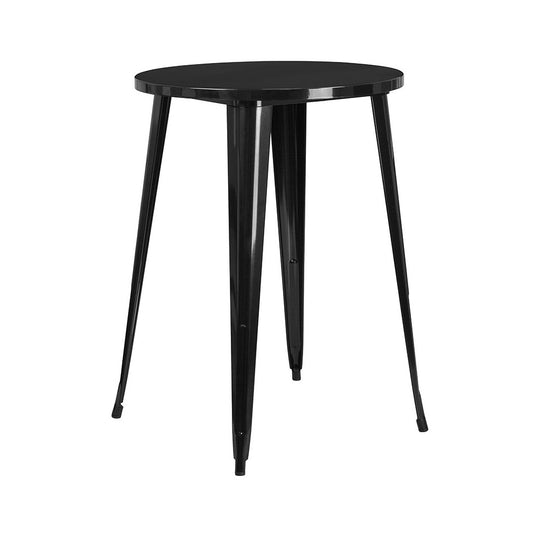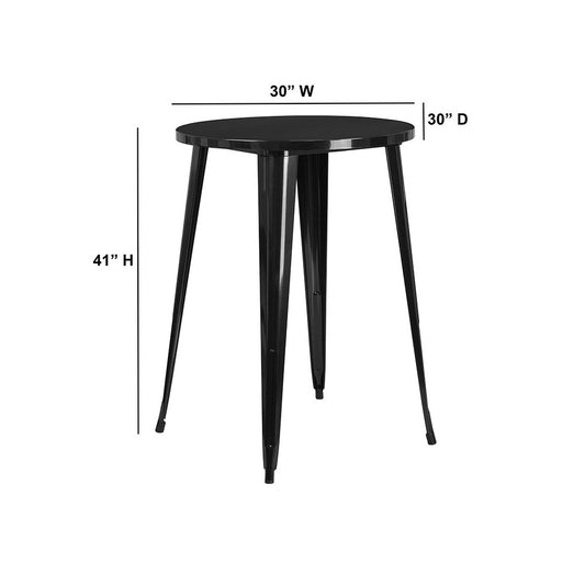 Commercial Grade 30" Round Black Metal Indoor-Outdoor Bar Height Table
