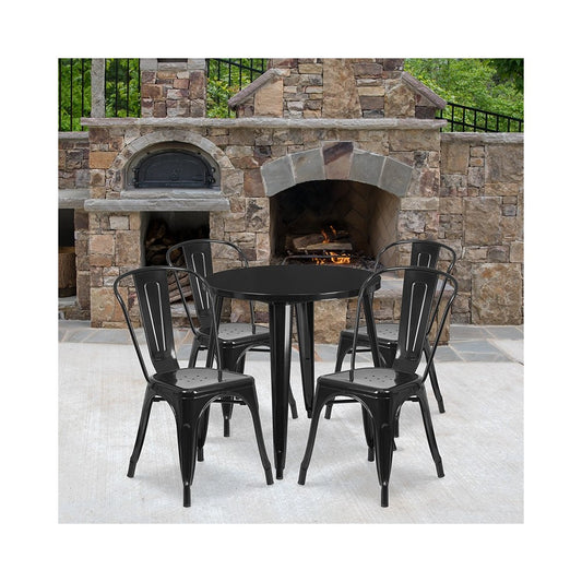 Commercial Grade 30" Round Black Metal Indoor-Outdoor Table Set with 4 Cafe Chairs
