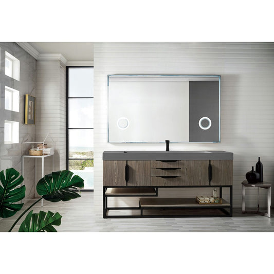 Columbia 72" Single Vanity Ash Gray Matte Black w/Dusk Gray Glossy Composite Top