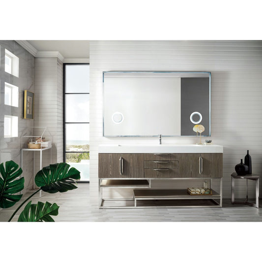 Columbia 72" Single Vanity, Ash Gray w/ Glossy White Composite Top