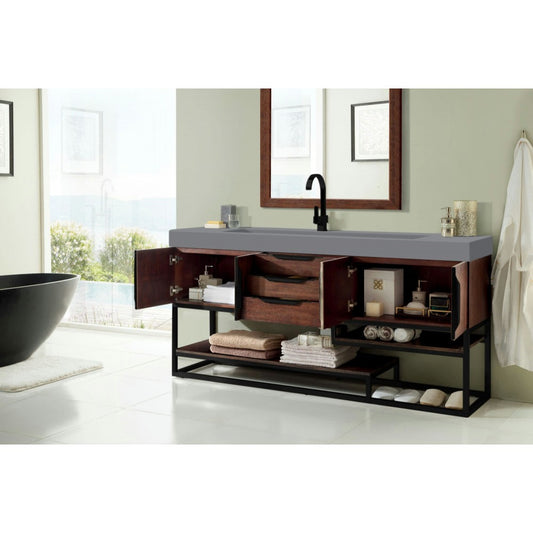 Columbia 72" Single Vanity, Coffee Oak w/ Dusk Gray Glossy Composite Top