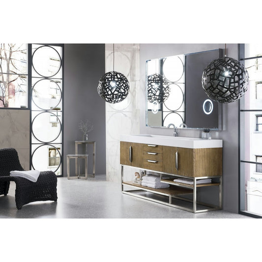 Columbia 72" Single Vanity, Latte Oak w/ Glossy White Composite Top