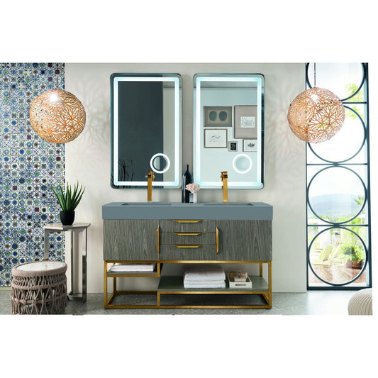 Columbia 59" Double Vanity Ash Gray Radiant Gold w/Dusk Gray Composite Top