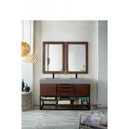 Columbia 59" Double Vanity Coffee Oak Black w/Dusk Gray Glossy Composite Top