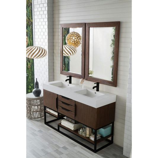 Columbia 59" Double Vanity Coffee Oak Matte Black w/ Glossy White Composite Top