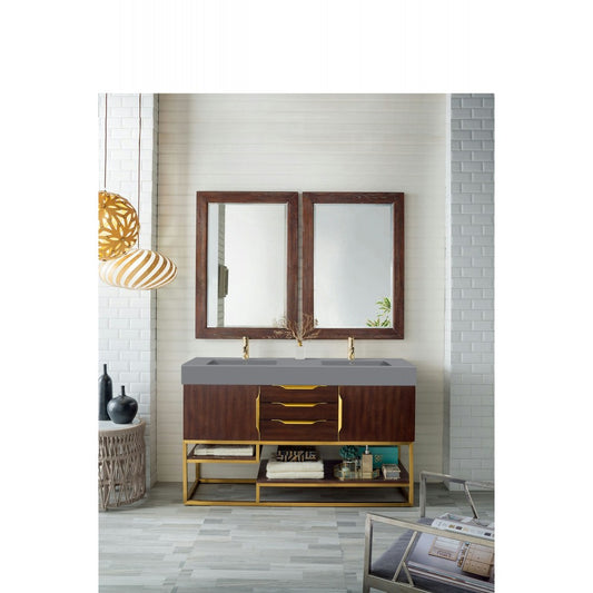 Columbia 59" Double Vanity Coffee Oak Radiant Gold w/Dusk Gray Composite Top