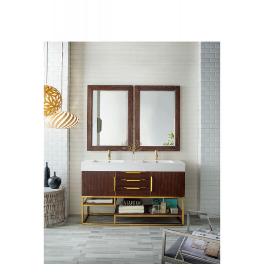 Columbia 59" Double Vanity Coffee Oak Radiant Gold w/ Glossy White Composite Top
