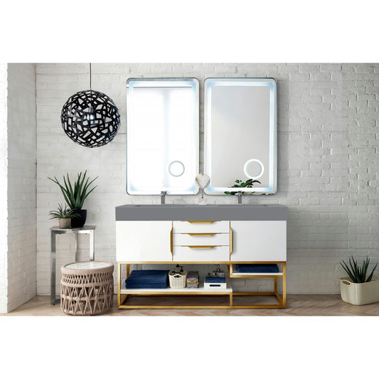 Columbia 59" Double Vanity White Radiant Gold w/Dusk Gray Composite Top