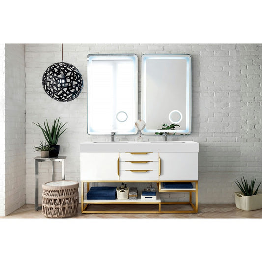 Columbia 59" Double Vanity White Radiant Gold w/ White Composite Top
