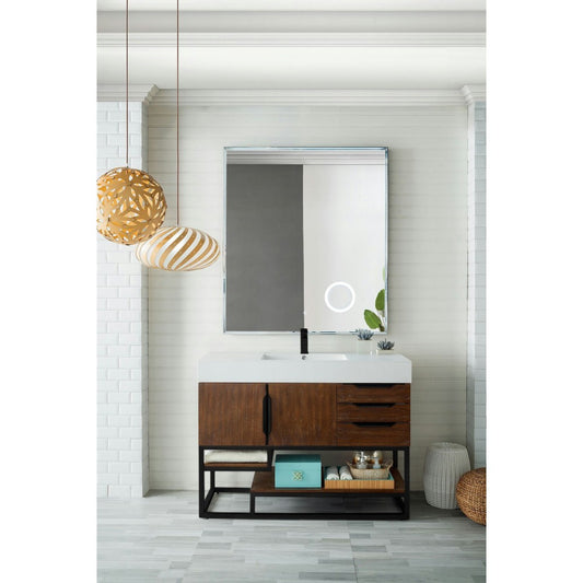 Columbia 48" Single Vanity, Latte Oak, Matte Black w/ Glossy White Composite Top