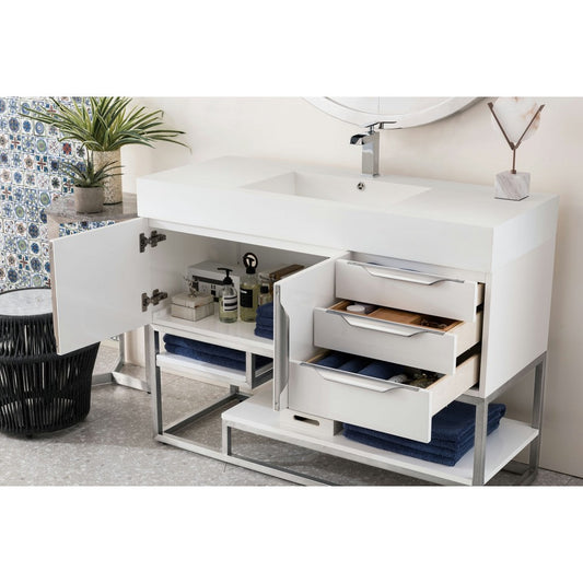 Columbia 48" Single Vanity, Glossy White, w/ Glossy White Composite Top