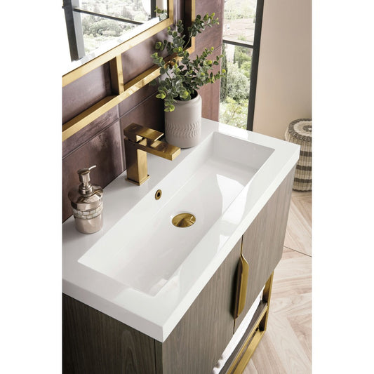 Columbia 31.5" Single Vanity Ash Gray Radiant Gold w/ White Glossy Composite Top