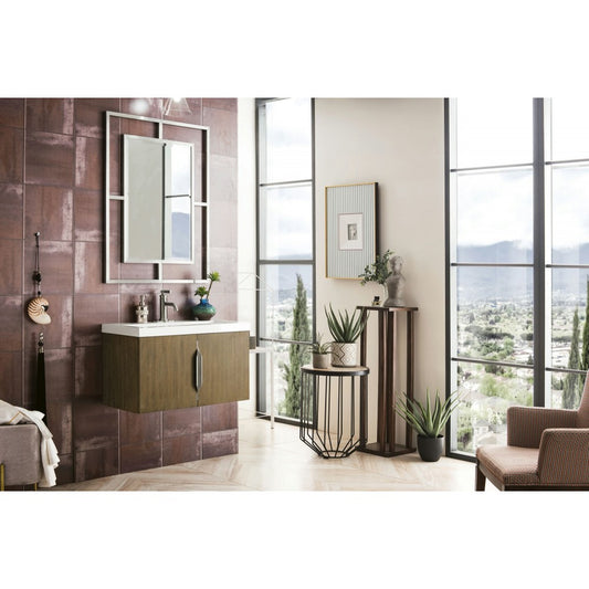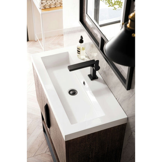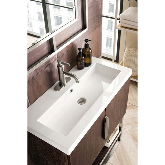 Columbia 31.5" Single Vanity Cabinet, Latte Oak w/ White Glossy Composite Top