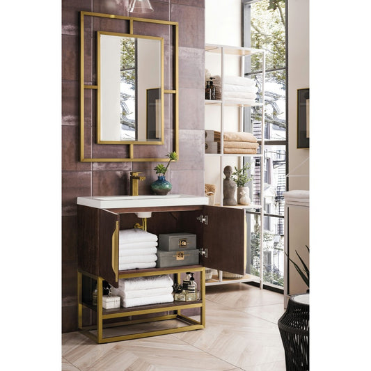 Columbia 31.5" Single Vanity Coffee Oak Radiant Gold w/White Composite Top