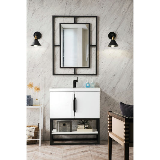 Columbia 31.5" Single Vanity Cabinet, Glossy White, Matte Black