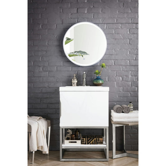 Columbia 24" Single Vanity Glossy White Nickel w/White Glossy Composite Top