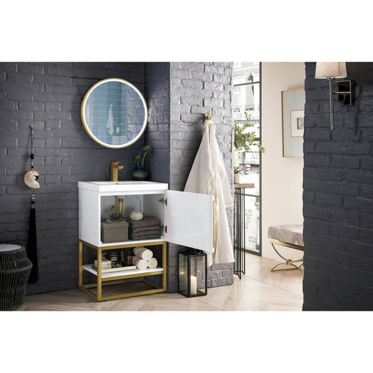Columbia 24" Single Vanity Glossy White Radiant Gold w/White Composite Top