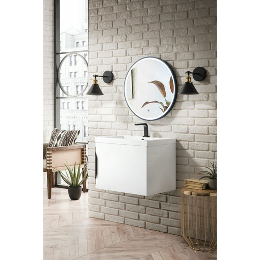 Columbia 24" Single Vanity Glossy White Matte Black w/White Glossy Composite Top
