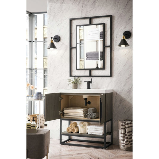 Columbia 31.5" Single Vanity Ash Gray Matte Black w/ White Glossy Composite Top