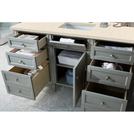Brittany 60" Urban Gray Single Vanity w/ 3 CM Eternal Jasmine Pearl Quartz Top