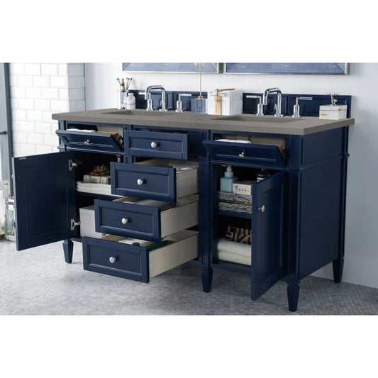 Brittany 60" Victory Blue Double Vanity w/ 3 CM Gray Expo Quartz Top