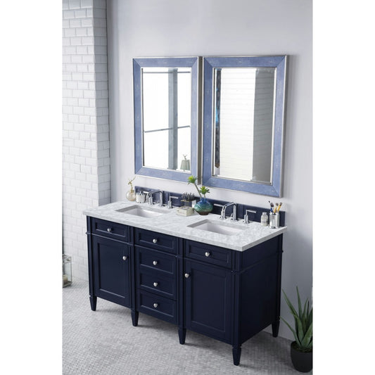 Brittany 60" Victory Blue Double Vanity w/ 3 CM Carrara Marble Top
