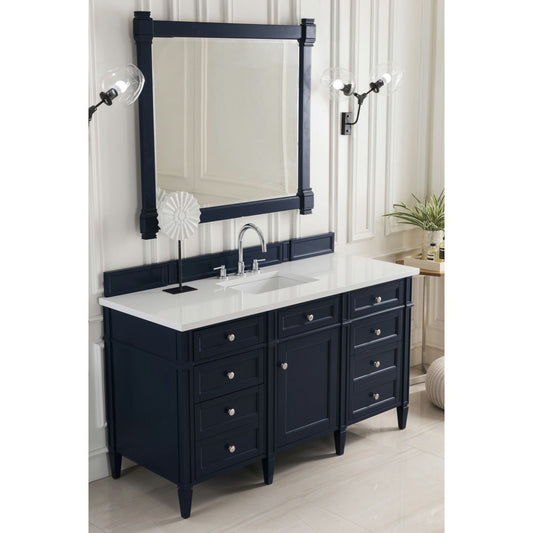 Brittany 60" Victory Blue Single Vanity w/ 3 CM Classic White Quartz Top