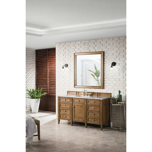 Brittany 60" Saddle Brown Double Vanity w/ 3 CM Eternal Jasmine Pearl Quartz Top