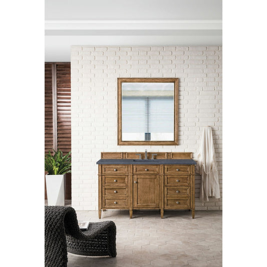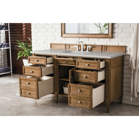 Brittany 60" Saddle Brown Single Vanity w/ 3 CM Gray Expo Quartz Top