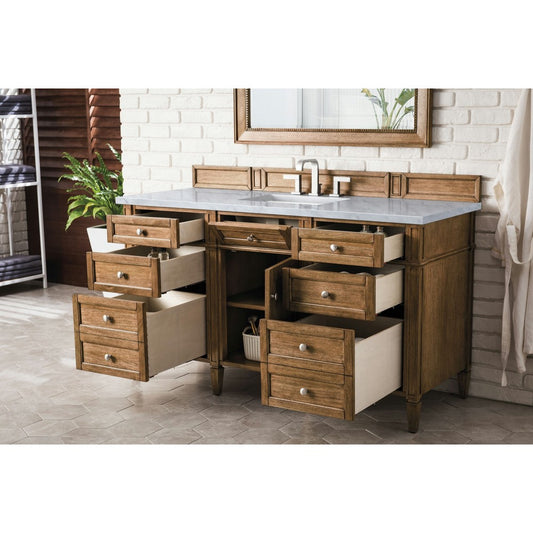 Brittany 60" Saddle Brown Single Vanity w/ 3 CM Carrara Marble Top