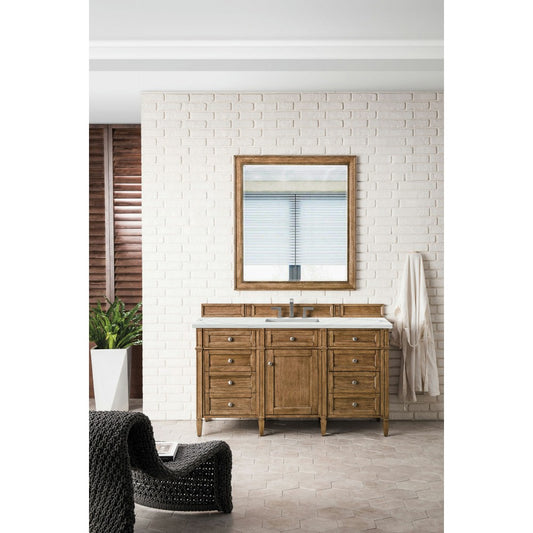 Brittany 60" Saddle Brown Single Vanity w/ 3 CM Classic White Quartz Top