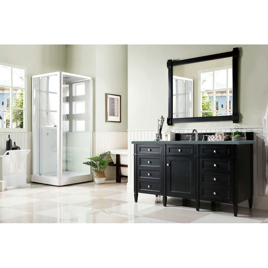 Brittany 60" Single Vanity, Black Onyx, w/ 3 CM Eternal Jasmine Pearl Quartz Top