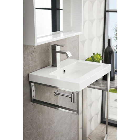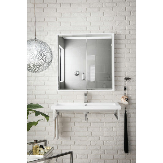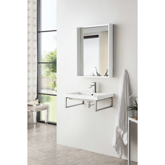 Two Boston 18" Wall Brackets, Brushed Nickel w/23.6" White Glossy Composite Top