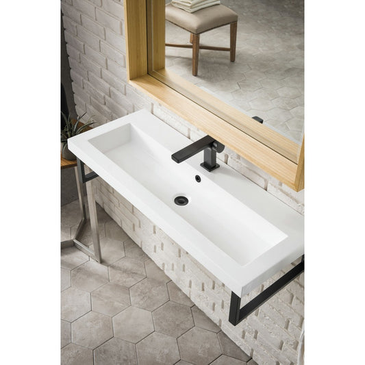 Two Boston 15 1/4" Wall Brackets, Matte Black w/39.5" White Glossy Composite Top